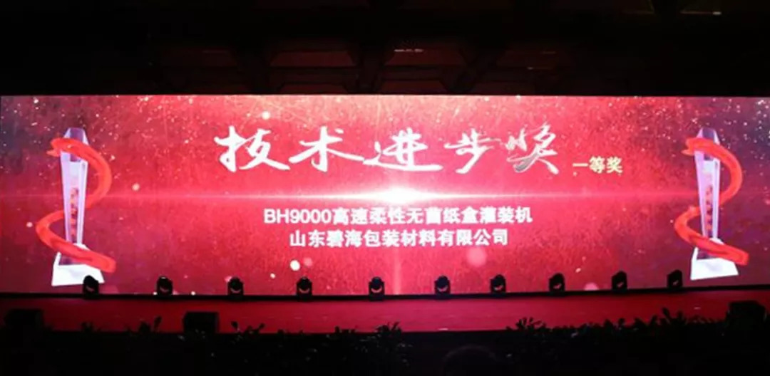 8月25日晚,2018年度中國(guó)乳制品工業(yè)協(xié)會(huì)系列頒獎(jiǎng)典禮在西安曲江國(guó)際會(huì)議中心隆重舉行。山東碧海包裝材料有限公司制造的BH9000高速柔性無(wú)菌紙盒灌裝機(jī)榮獲技術(shù)進(jìn)步獎(jiǎng)一等獎(jiǎng)!